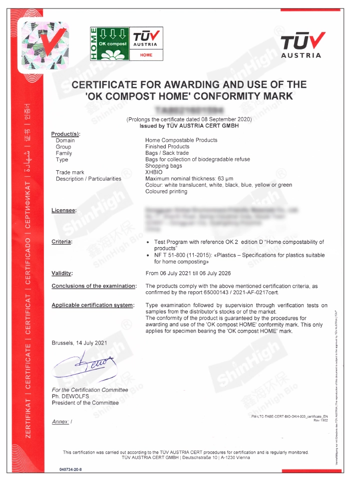 TUV OK Compost Home certified